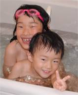暑い・・・暑い・・・ ということで娘と次男はお風呂で行水。実に楽しそうな声を挙げながら遊んでいる。